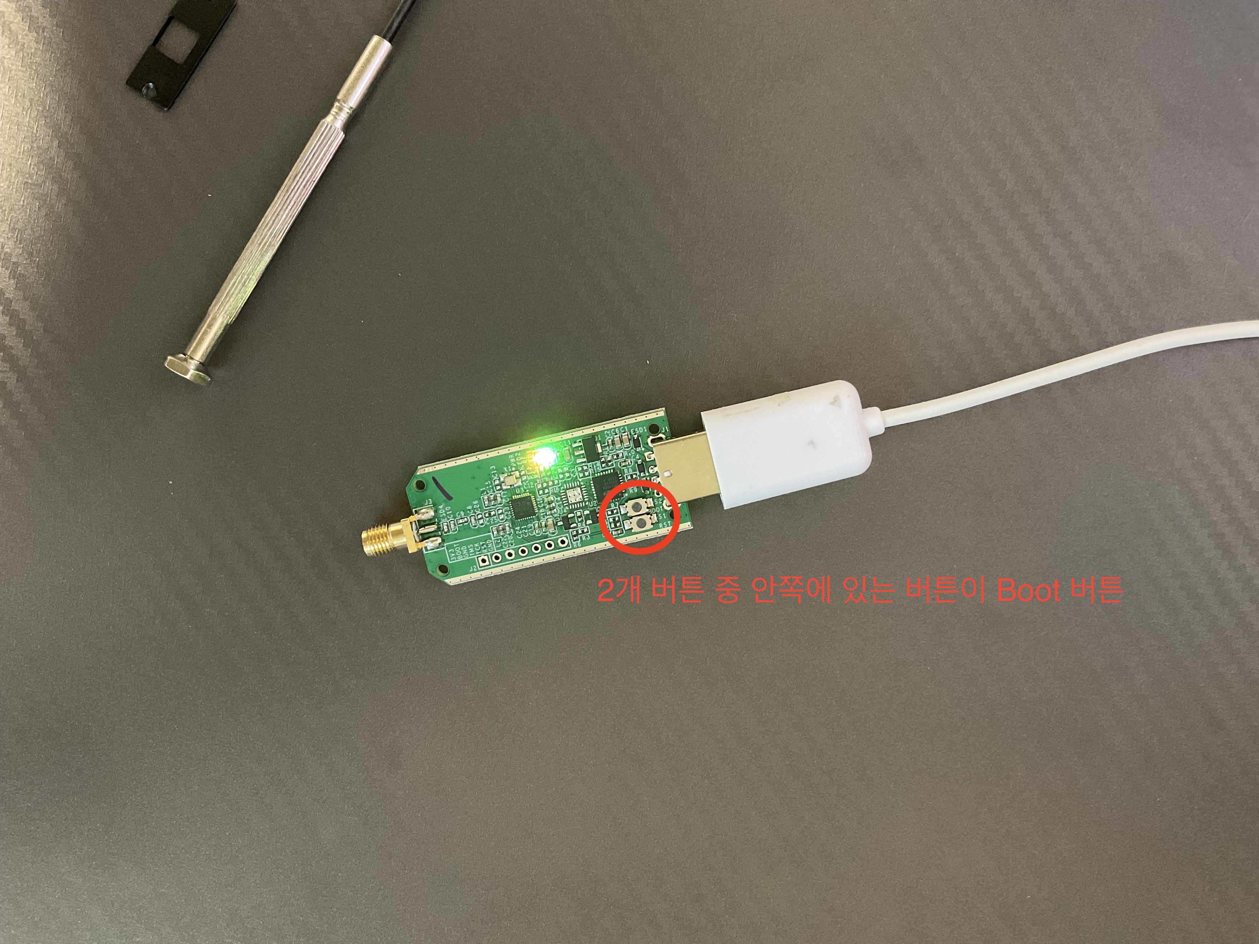 1) 나사를 풀어서 dongle의 알루미늄 케이스와 안의 기판을 분리한다.