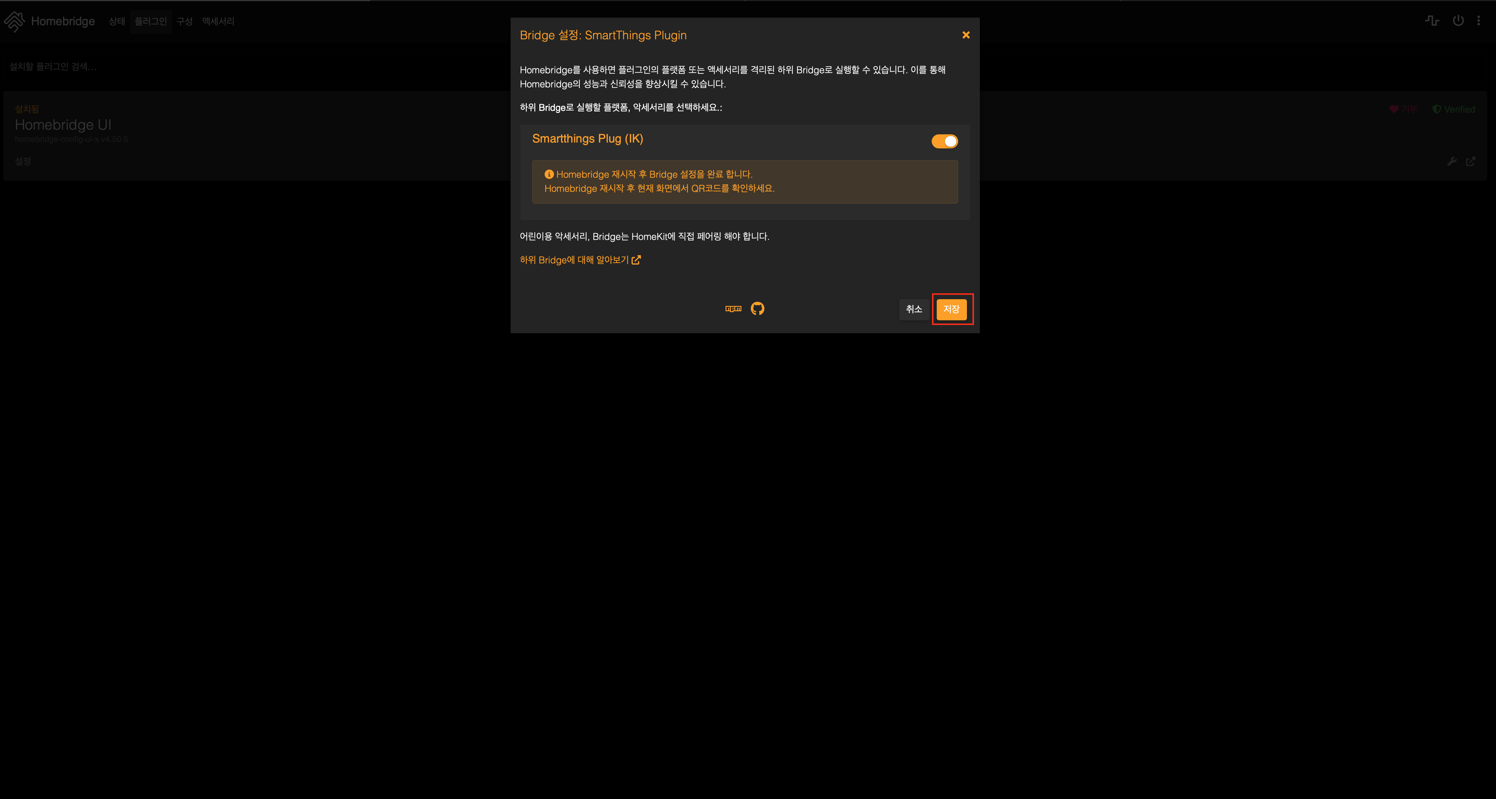 2. 홈브릿지에서 스마트싱스 플러그인 설치