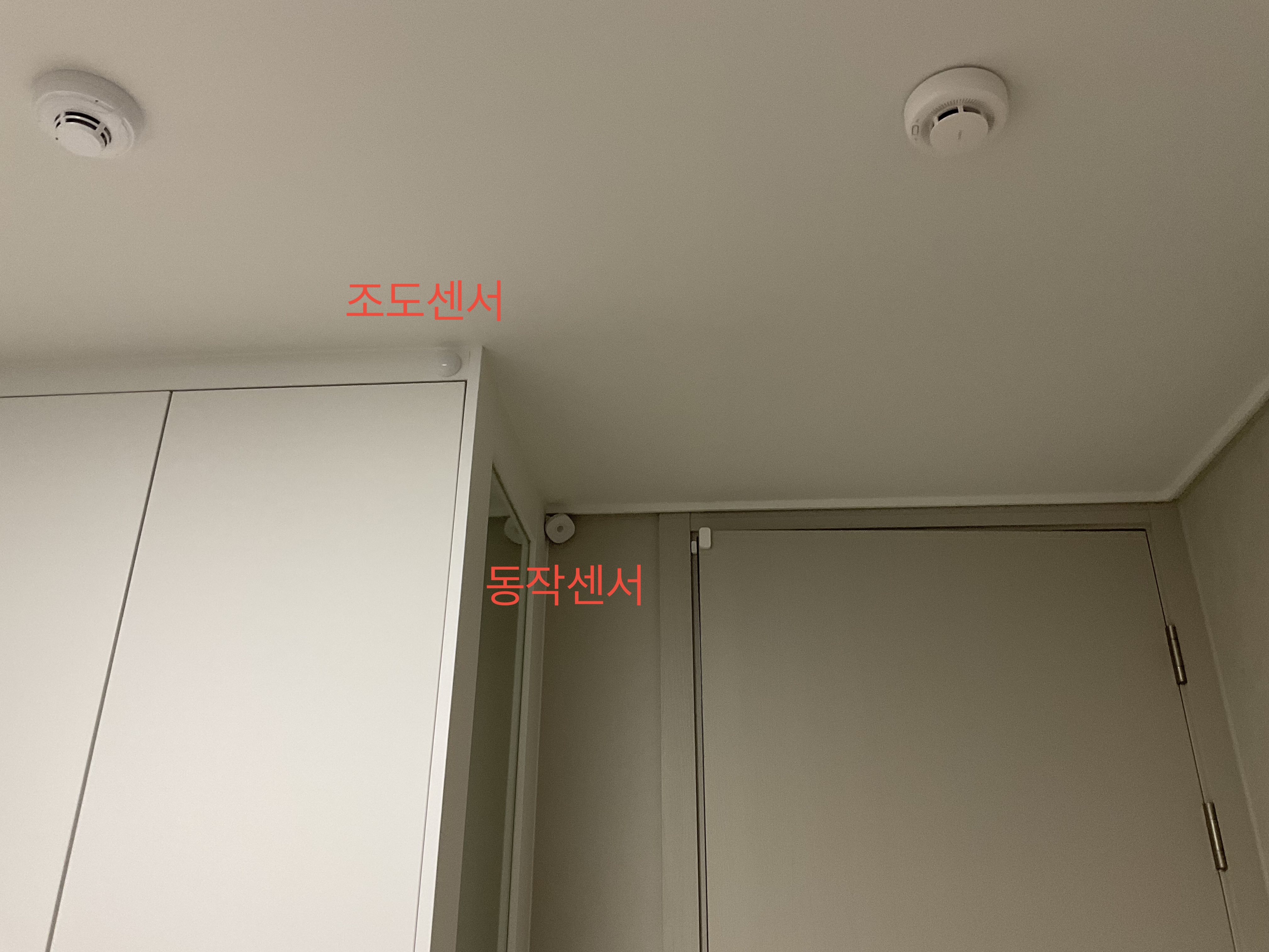 • 재실 감지 센서: 아카라 FP1을 사용 중이며, 방 안 천장에 설치되어 방 안에 사람이 있는지 없는지를 감지한다.