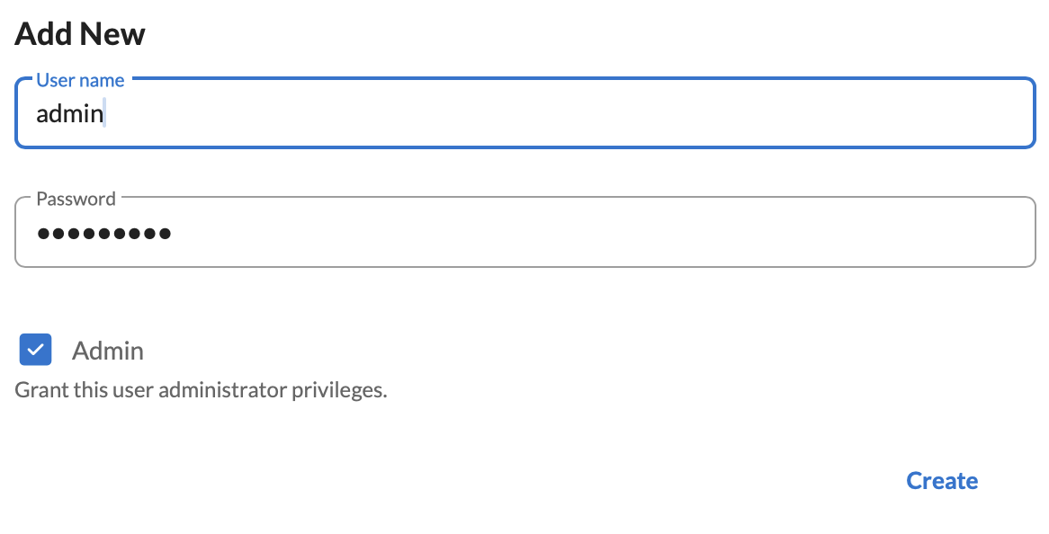 3. 새 사용자 이름(User name)과 비밀번호(Password)를 차례로 입력한다.