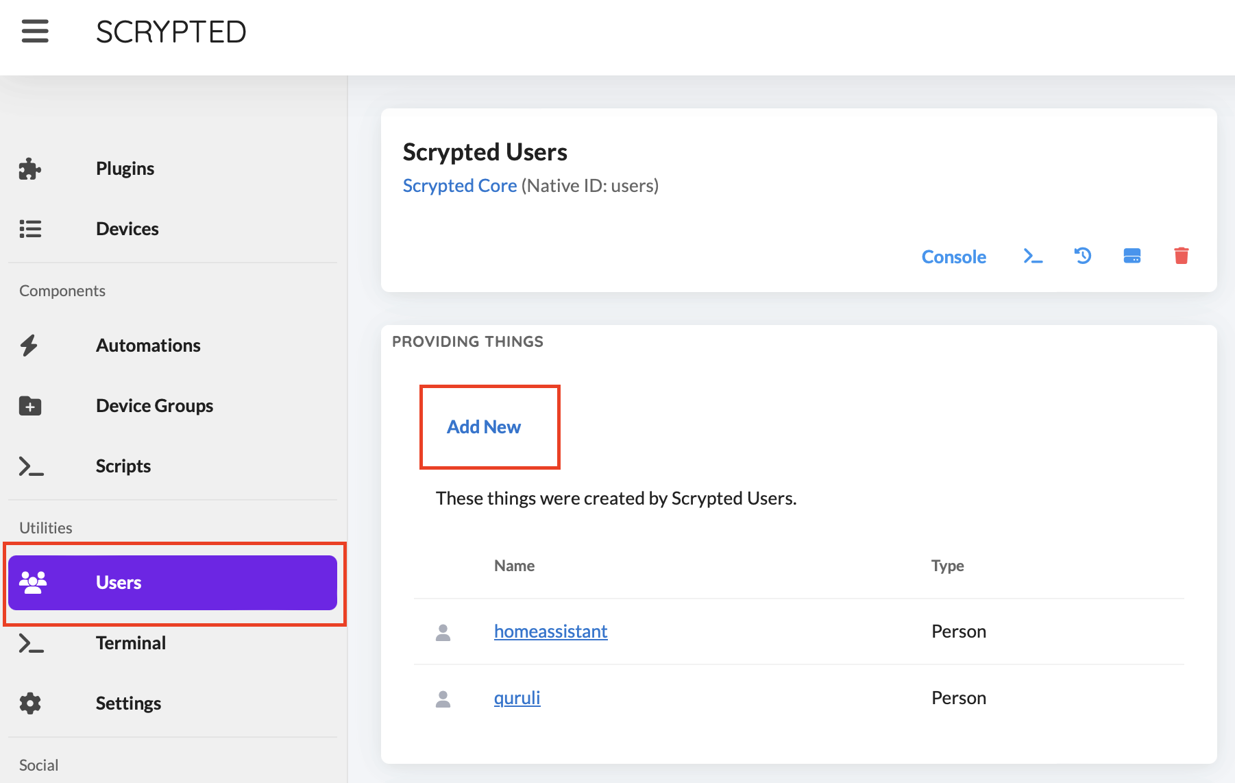 Management Console을 눌러서 Scrypted 안으로 들어간다.