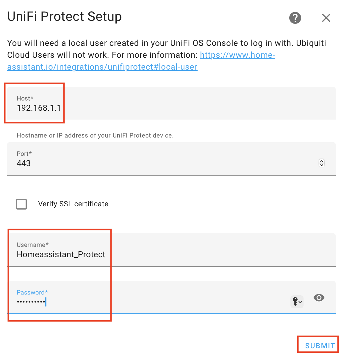 유니파이 카메라(도어벨)가 유니파이 프로텍트에 연동이 된 상태에서 HA에 연동하기 위해서는 일단 유니파이 콘솔에 로그인할 수 있는 로컬 계정을 생성한 후, HA 통합 구성 요소에서 유니파이 프로텍트(UniFi Protect)를 찾아 설치해야 한다. 그리고 앞서 생성한 계정을 HA 유니파이 프로텍트 통합 구성 요소에 로그인을 하면 카메라 관련 모든 요소들이 HA에 연동된다.